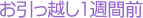 住み慣れた街との別れを惜しみながらこれから始まる新しい暮らしに胸が高まります。 用意周到でクレバーなお引越をするために直前一週間になすべきことをリストアップしました。